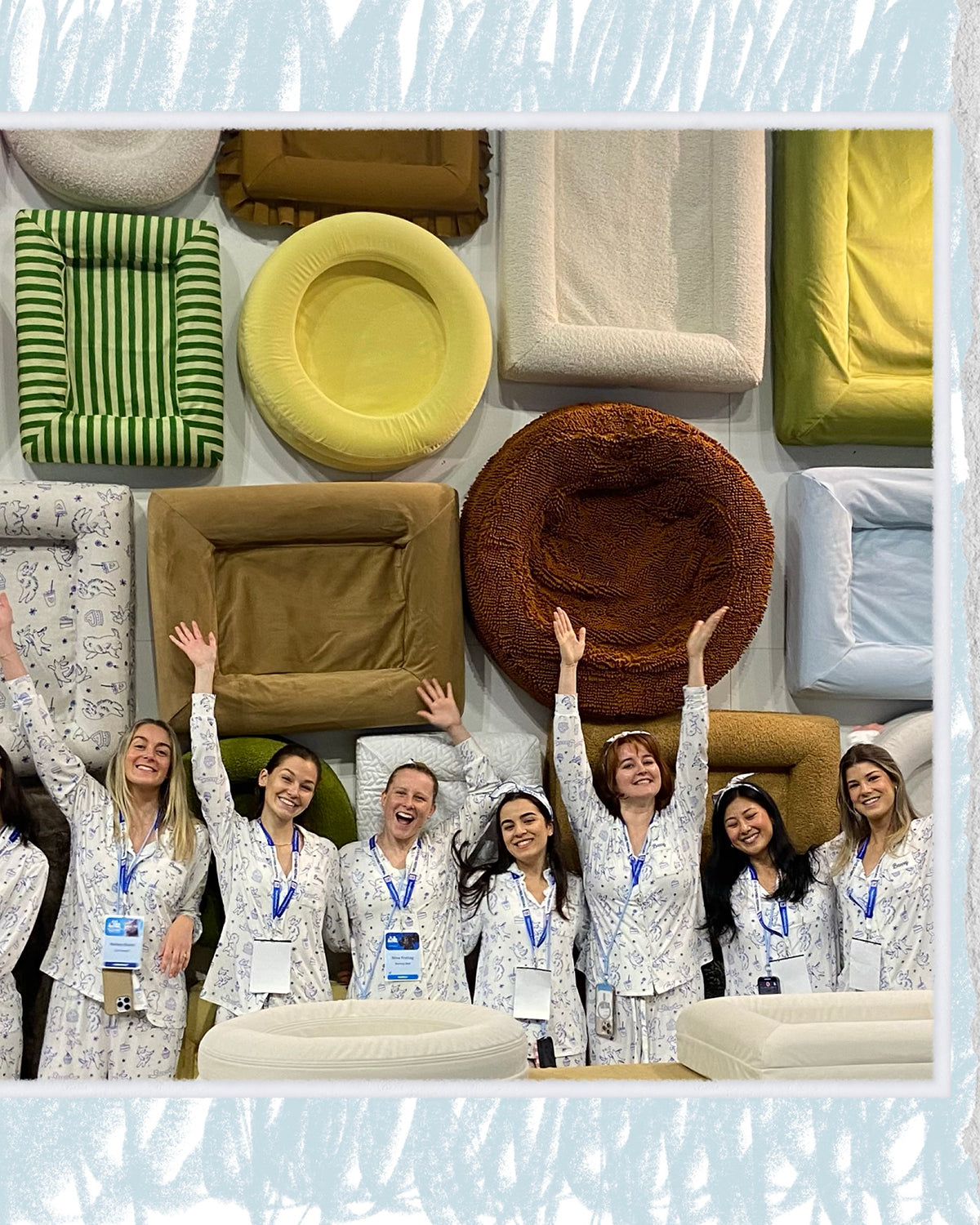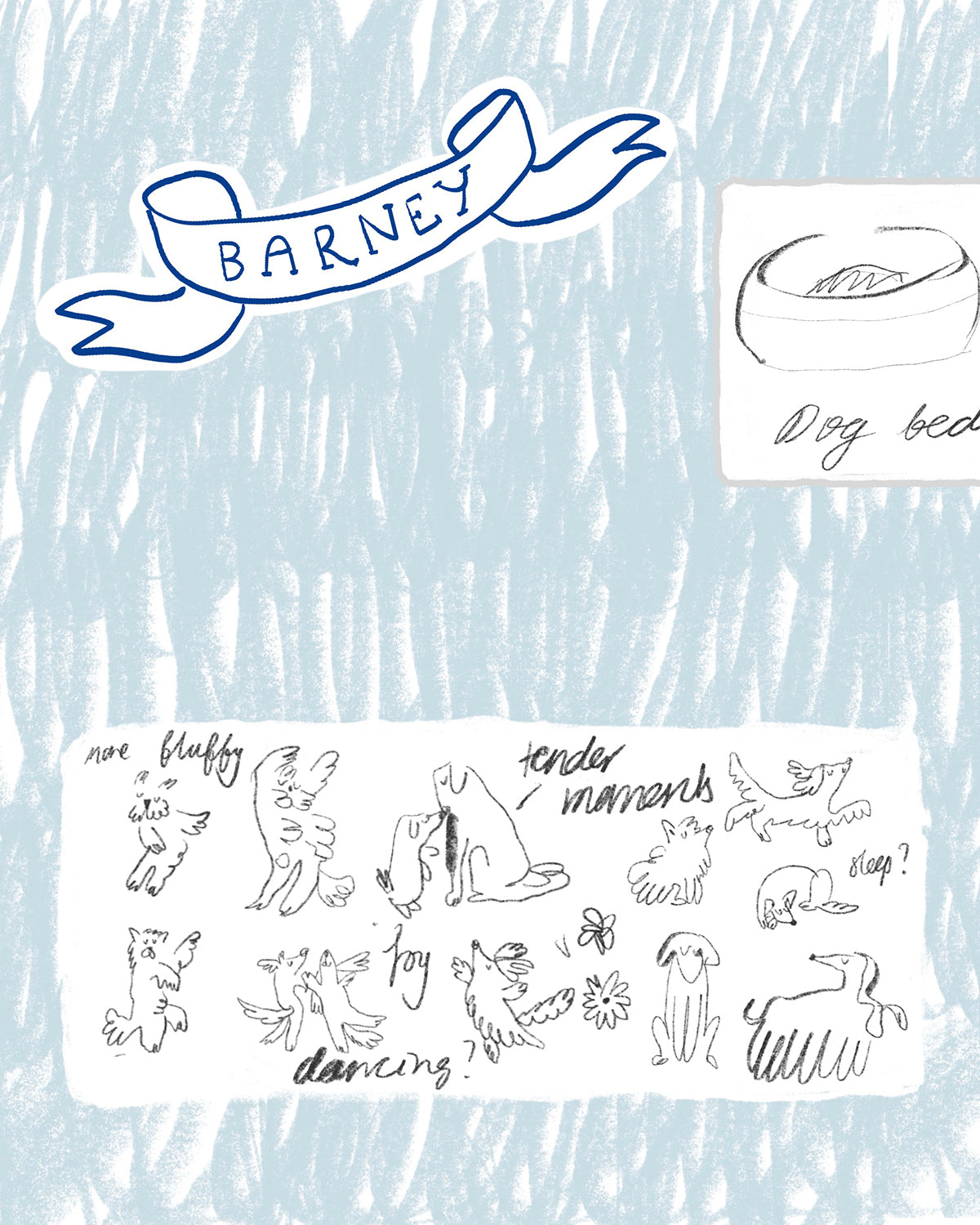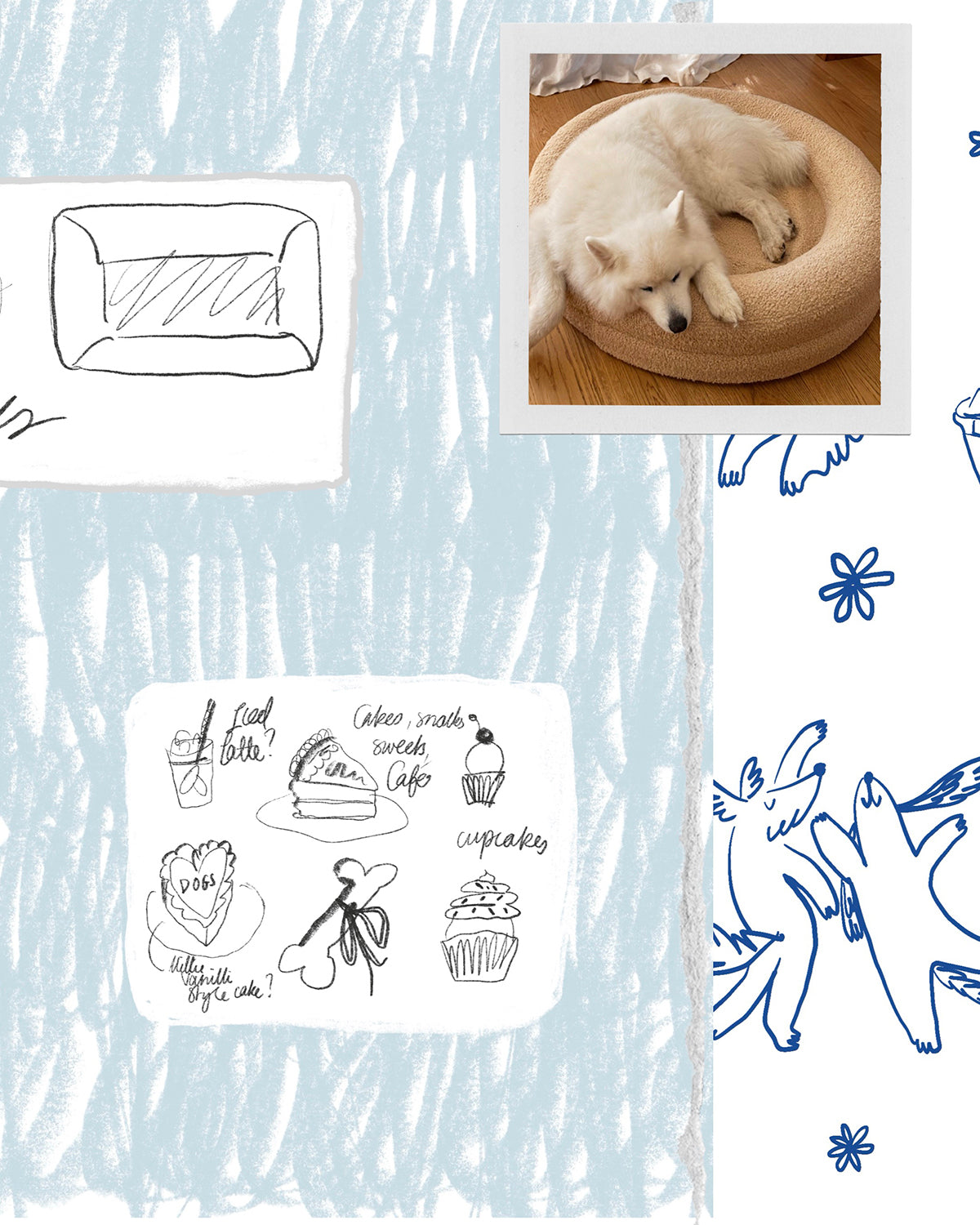 I started with loose sketches, developed them into a set of dancing-dog icons, and built them into a repeat pattern. After reviewing color options, we chose a clean blue-and-white palette. Once finalised, the pattern moved into production - an exciting moment seeing the artwork come to life.
