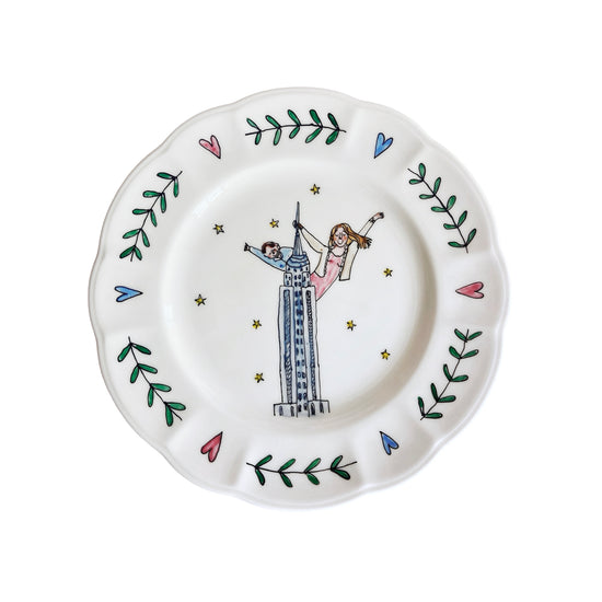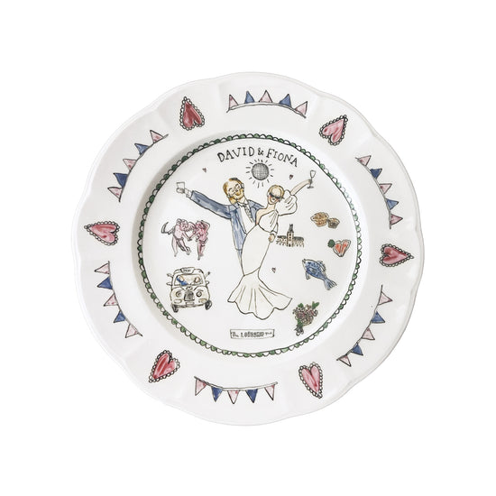 A beautifully crafted fine china plate featuring an elegant French scalloped rim. Each piece is hand-painted with care in my Dalston studio, made exclusively to your specifications.