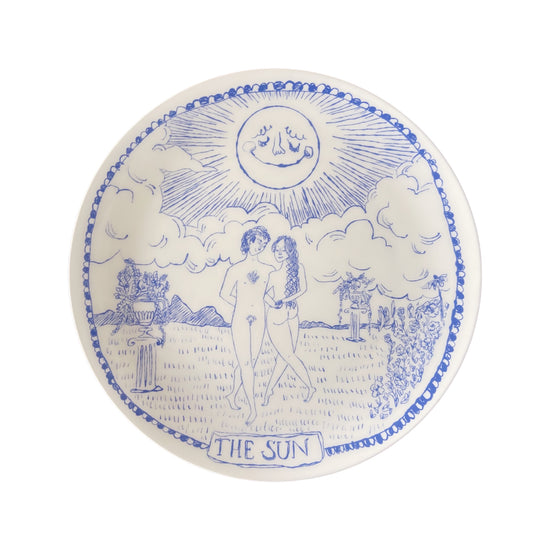 Lend a whimsical touch to your tablescape with this silk screen-printed dinner plate. Blending tradition with a sense of humour, the Tarot collection is characterised by a series of playful screen-printed designs based on the original Raider Waite Tarot Deck. Crafted from porcelain, each plate in the collection is unique and finished with a lead-free glaze. Use as a decorative piece or collect a set to create a personalised dining arrangement.